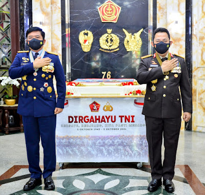 Pada momentum HUT TNI, Kapolri beserta jajaran Mabes Polri juga menyempatkan diri untuk memberikan kejutan dengan membawa kue ulang tahun kepada Panglima TNI Marsekal Hadi Tjahjanto di kantornya Subden Merdeka Barat Denma Mabes TNI, Merdeka Barat, Jakarta Pusat.