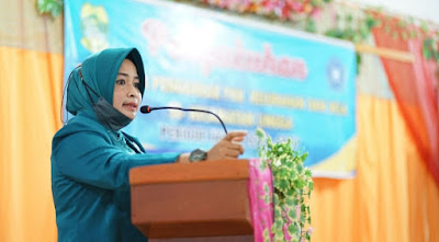 Lingga (Harian.co) — Ketua TP PKK Kabupaten Lingga, Maratussholiha Nizar menghadiri pelantikan pengurus TP PKK Desa/Kelurahan se-Kecamatan Lingga di Aula Hotel Lingga Pesona, Daik, Senin (27/09/2021). Pelantikan dilakukan Ketua TP PKK Kecamatan Lingga, Srinawati Yulius ditandai dengan pemasangan pin dan penyerahan SK.