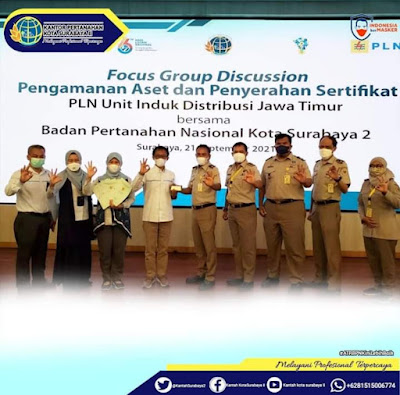 Surabaya (Harian.co) — Selasa, 21 September 2021 Kepala Kantor Pertanahan Kota Surabaya II beserta jajaran menghadiri acara Forum Group Discussion (FGD) Pengamanan Aset PT PLN (Persero) bertempat di Ruang Rapat Kahuripan PT PLN (Persero) Unit Induk Distribusi Jawa Timur.