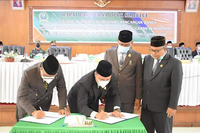 Bupati Erli Hasim hadiri rapat paripurna DPRk Simeulue dan juga sekaligus menyampaikan rancangan qanun pertanggungjawaban pelaksanaan APBK Simeulue tahun 2021.