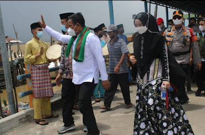 dan diarak menuju kantor camat untuk mengikuti prosesi acara Tepuk Tepung Tawar oleh Lembaga Adat Melayu Riau Kecamatan Kuala Kampar.