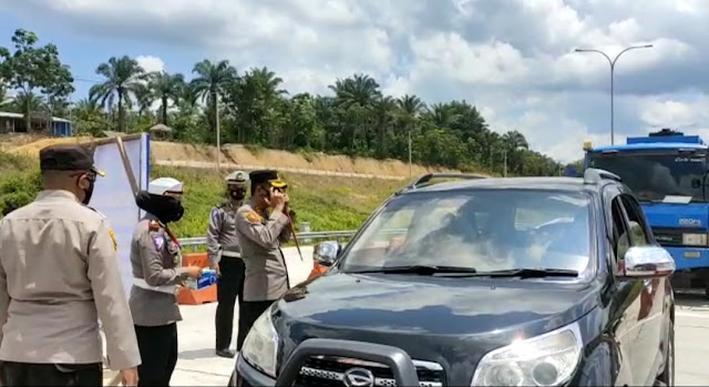Dumai (Harian.co) — Kepolisian Resor Dumai melalui Satuan Lalu Lintas Polres Dumai memberlakukan penyekatan pada pintu masuk Jalan Tol Dumai – Pekanbaru dalam rangka Pengaturan Pembatasan Mobilitas Arus Lalu Lintas Dan Aktivitas Masyarakat Pada Masa Penerapan Pembatasan Kegiatan Masyarakat (PPKM) Level III.