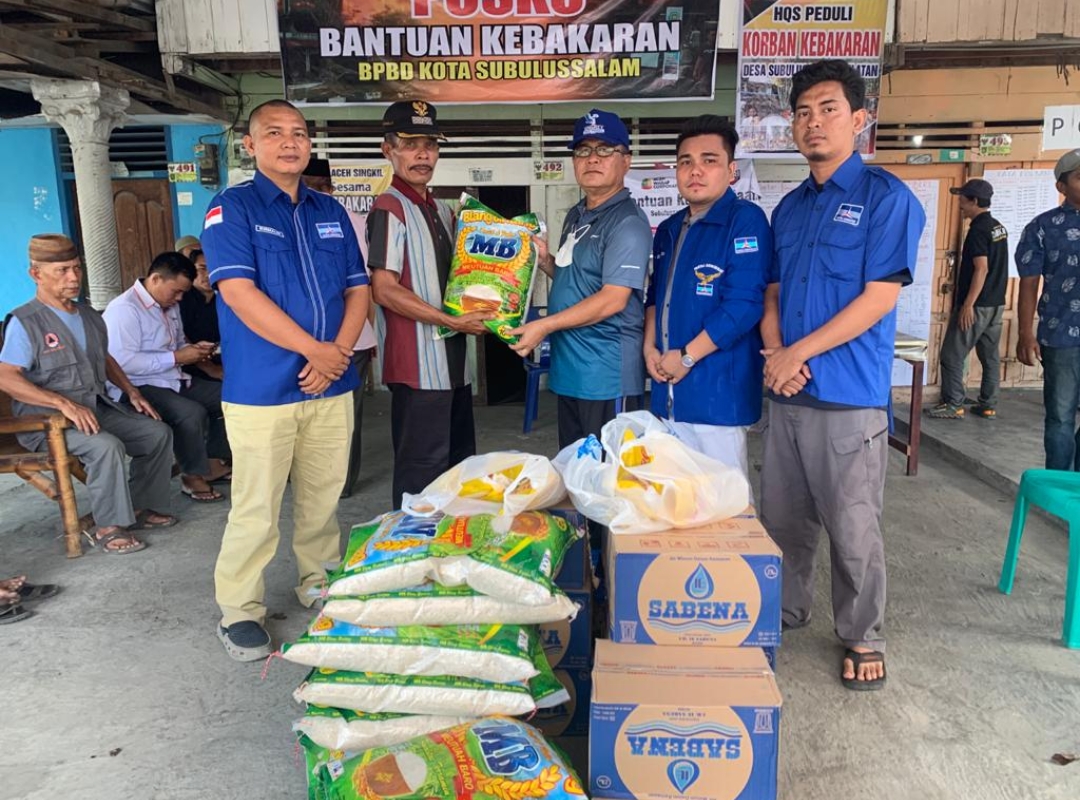 Bantuan berupa Beras, Minyak Goreng, Air Mineral dan Telor masing-masing 11 paket itu diserahkan langsung oleh Plt. Ketua DPC Partai Demokrat Subulussalam Drs. Salmaza Kombih, MAP dan diterima oleh Kepala Kampong setempat M. Amrin Limbong di Posko penerimaan bantuan tak jauh dari lokasi kebakaran. Rabu (04/08/2021).