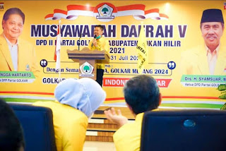 Rohil (Harian.co) — Musyawarah Daerah (Musda) V DPD II Partai Golkar Kabupaten Rokan Hilir (Rohil) secara resmi dibuka oleh Ketua DPD l Partai Golkar Provinsi Riau, H Syamsuar Sabtu (31/07/2021) di aula Lantai V Hotel Lion di Bagansiapiapi. Pelaksanaan Musda terakhir Partai Golkar untuk tingkat DPD se Profinsi Riau ini di harapkan menjadi momen untuk meningkatkan solidaritas antar Kader agar bersama membesarkan Partai serta menjadikan Golkar sebagai pemenang pada Pemilu serentak 2024 mendatang, sesuai dengan moto Musda V “Dengan semangat Musda, Golkar Menang 2024”.