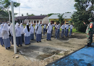 Lanjut Babinsa mengajak kepada siswa dan siswi agar tetap patuh dalam pendisiplinan protokol kesehatan selama kegiatan belajar mengajar walau secara daring (dalam jaringan) atau luring (luar jaringan) agar terhindar dari covid 19.