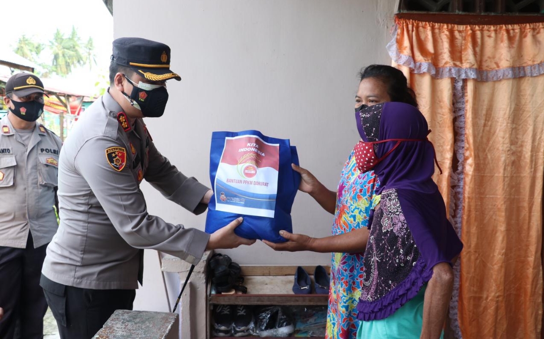Lingga (Harian.co) — Kapolres Lingga AKBP Arief Robby Rachman, S.H, S.I.K, M.Si dampingi Pejabat Utama (PJU) Polres Lingga dan Personil Polres Lingga berikan bantuan sosial (Bansos) berupa paket sembako kepada warga kurang mampu secara ekonomi akibat dampak Pandemi Covid-19 di Kelurahan Dabo Kecamatan Singkep Kabupaten Lingga, Kamis (22/07/2021).