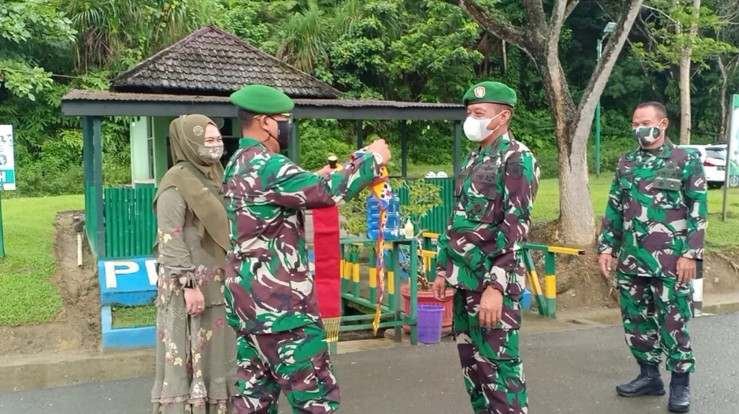 Simeulue (Harian.co) — Dandim 0115/Simeulue Letkol Inf Yogi Bahtiar S.Kom.M.B.A. bersama unsur Fokopimda Kabupaten Simeulue dan perwira staf jajaran Kodim sambut kedatangan Ketua tim penilai lomba Binter Kolonel Inf Riswanto dan beserta rombongan, di bandara Lasikin Desa Lasikin Kecamatan Simeulue tengah, Kamis 22 Juli 2021.