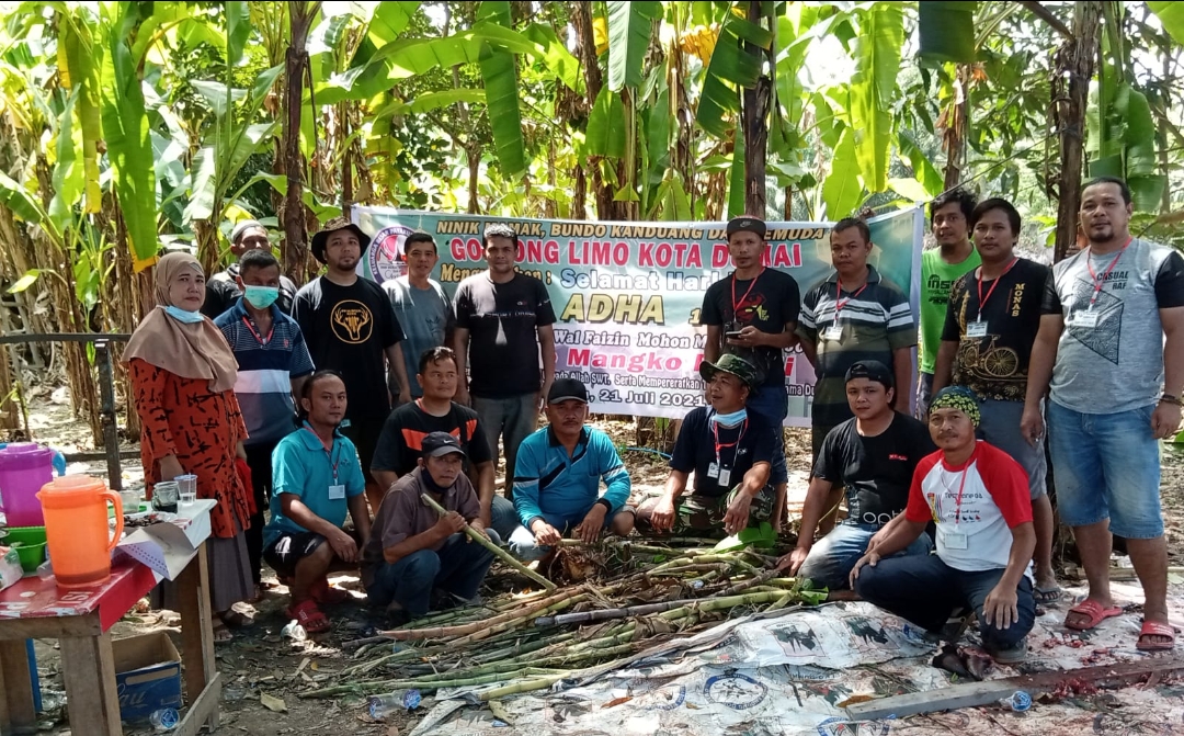Persatuan kedaerahan dan kesukuan Gonjong Limo Kota Dumai melaksanakan pemotongan hewan Qurban pada Rabu (21/07/2021) di Jl Raya Bukit Kota Dumai Sebanyak 4 ekor yang tahun sebelumnya hanya 1 ekor.