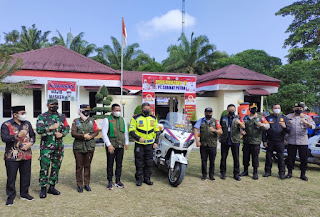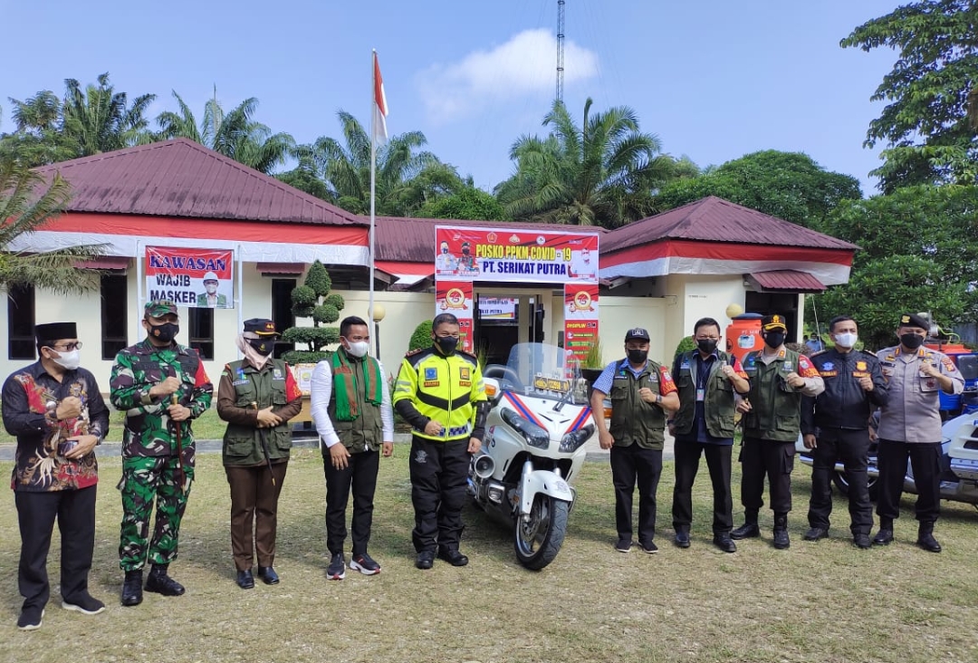 Rombongan Bupati Pelalawan dan Kapolda Riau datang berkonvoi menggunakan kendaraan sepeda motor Dinas Ditlantas Polda Riau dan disambut baik oleh Camat Bandar Petalangan Mukhtarius, M.Pd beserta Upika Kecamatan Bandar Petalangan di halaman Posko PPKM PT Serikat Putra Desa Sialang Godang, Kecamatan Bandar Petalangan.