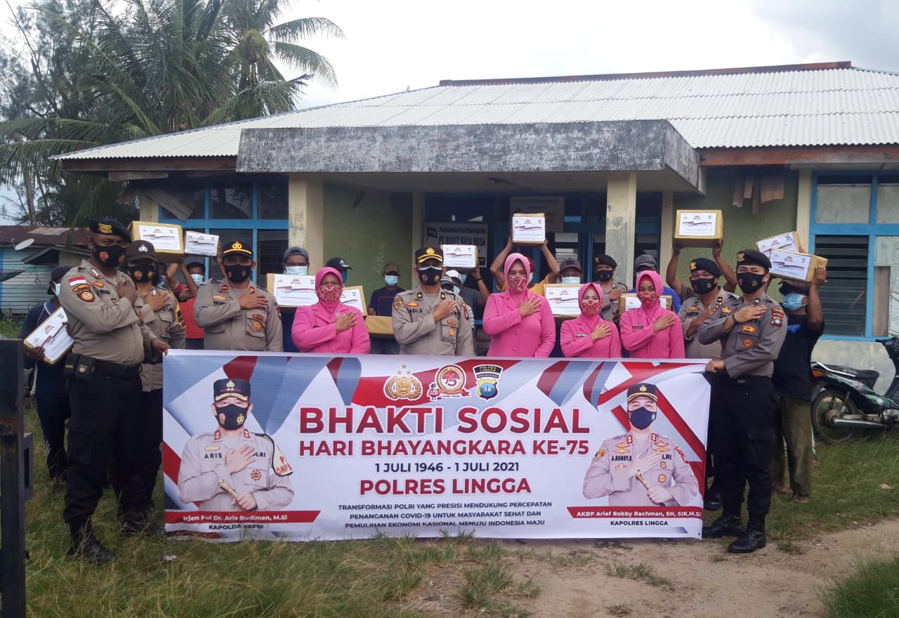 Lingga (Harian.co) — Kepolisian Resor (Polres) Lingga bersama Jajaran Polsek menggelar bakti sosial (Baksos) secara serentak. Kegiatan ini dilakukan dalam rangka menyambut Hari Bhayangka ke-75 pada 1 Juli 2021 mendatang.