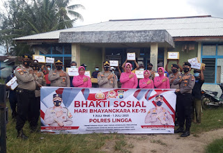 Kapolres Lingga AKBP Arief Robby Rachman, SH, SIK,M.Si melalui Kasi Humas Polres Lingga AKP Hasbi Lubis mengatakan bahwa kegiatan bakti sosial serentak ini merupakan kegiatan rutin yang diselenggarakan setiap tahun dalam rangka memperingati Hari Bhayangkara.