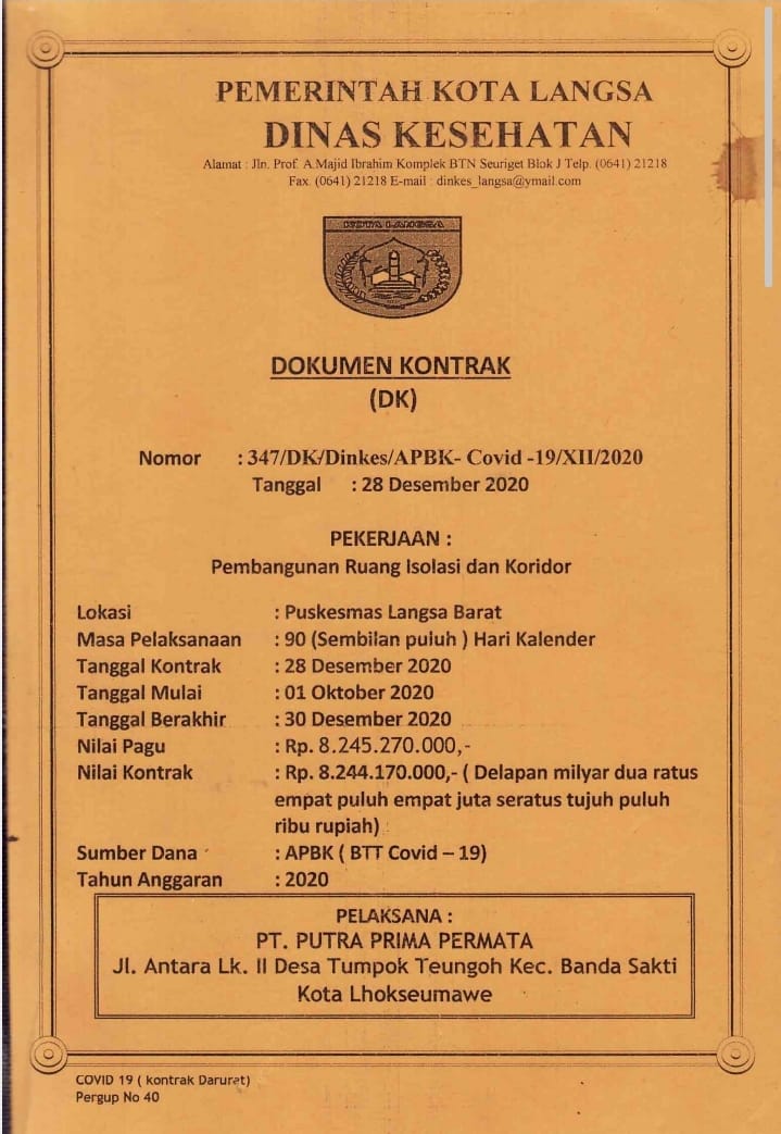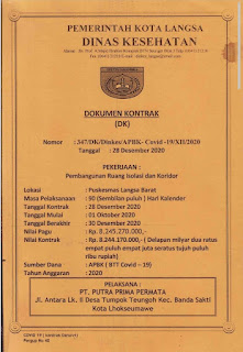 Bahkan Kadiskes mengirimkan foto kontrak proyek yang dikerjakan perusahaan dimaksud pada tahun 2021 sama subidang nya, yakni gedung Puskesmas lokasinya di Langsa Barat.