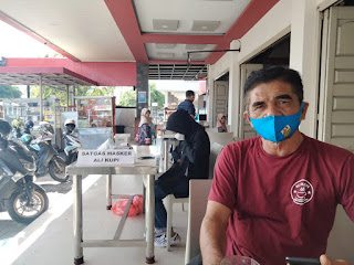 Adapun katanya bagi yang masuk warung selama ini selalu dianjurkan untuk mengecek suhu tubuh dan mencuci tangan serta memakai masker.