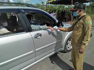 Dengan dampingi pihak dari petugas kesehatan yang bertugas di Desa Tinjul tersebut, Saudari Yulianti untuk pengecekan suhu tubuh para tamu maupun warga yang dari Desa Tinjul maupun dari luar Desa Tinjul tersebut.