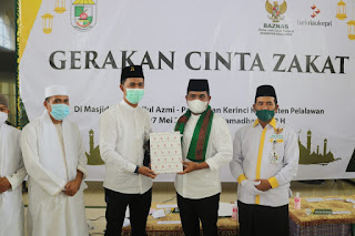 Pelalawan (Harian.co) — Badan Amil Zakat Nasional (Baznas) Kabupaten Pelalawan menggelar peluncuran gerakan cinta zakat di Kabupaten Pelalawan yang berlangsung di Mesjid Ulul Azmi Pangkalan Kerinci, bertepatan dengan 25 ramadhan 1442 H, pada Jum’at (07/05/2021).