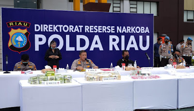 Kapolda Riau Irjen Agung Setia Imam Effendi saat release Selasa (04/05/2021) siang dimako Polda mengatakan pengungkapan sudah sering dilakukan oleh pihaknya, namun seperti tidak ada habis habisnya peredaran narkoba di Riau.