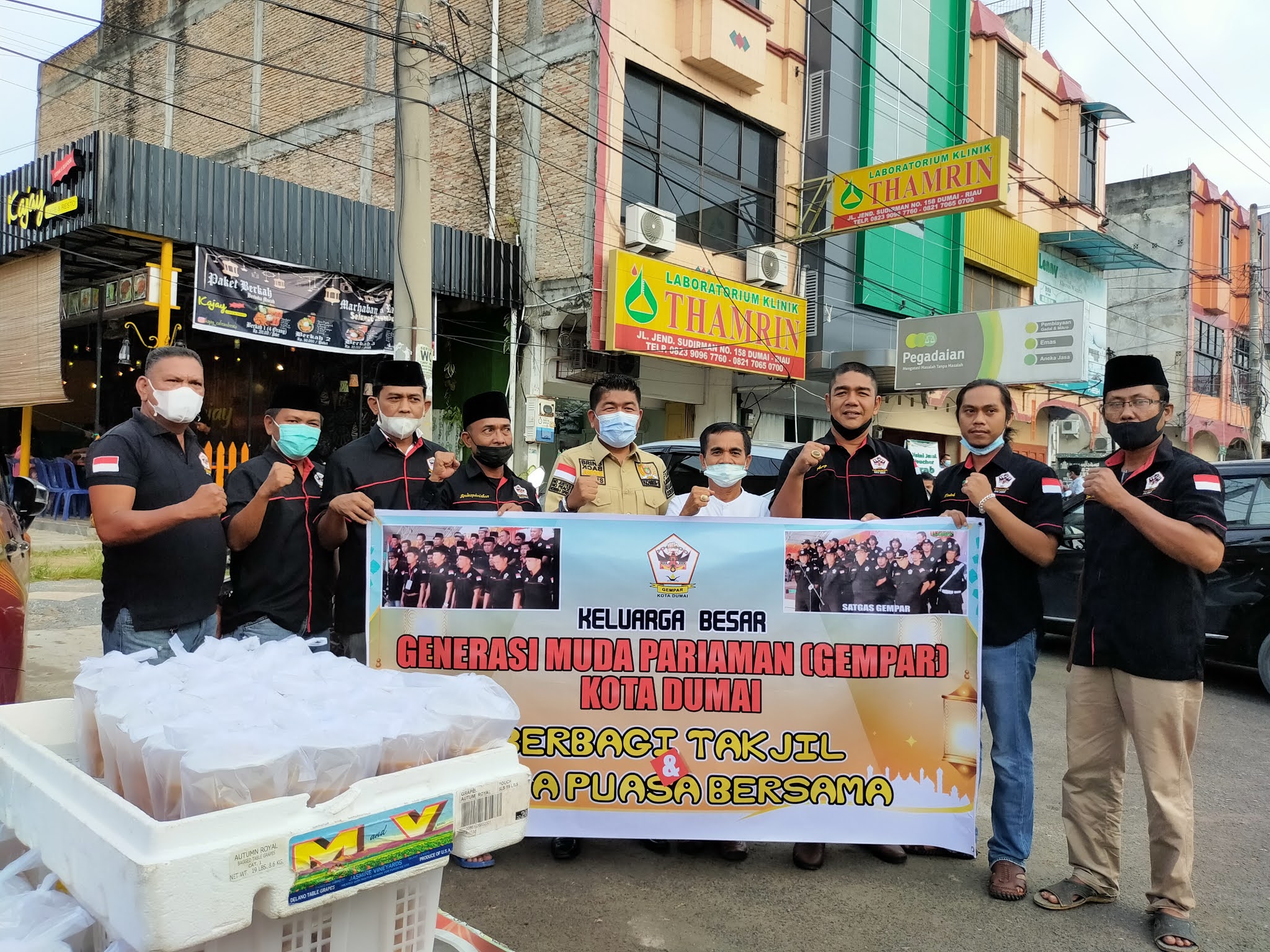 Dumai (Harian.co) — Generasi Muda Pariaman (GEMPAR) Kota Dumai mengadakan pembagian takjil kepada masyarakat Kota Dumai yang melintas, kegiatan tersebut dilakukan di Jalan Sudirman tepatnya depan Kajay Cafe & Resto.