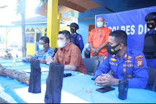 Dijelaskan Kapolres Dumai AKBP Andri Ananta Yudhistira, S.I.K, M.H melalui Kasat Reskrim Polres Dumai AKP Fajri, S.H, S.I.K, Kasat Pol Air Polres Dumai AKP Yudhi Setiawan, S.H, M.H dan Kasubbag Humas Polres Dumai IPTU Iskandar pada pelaksanaan Press Conference, Sabtu (10/04/2021), seorang tersangka yang berhasil diamankan ialah AM (58) warga Kelurahan Rimba Sekampung Kecamatan Dumai Kota
