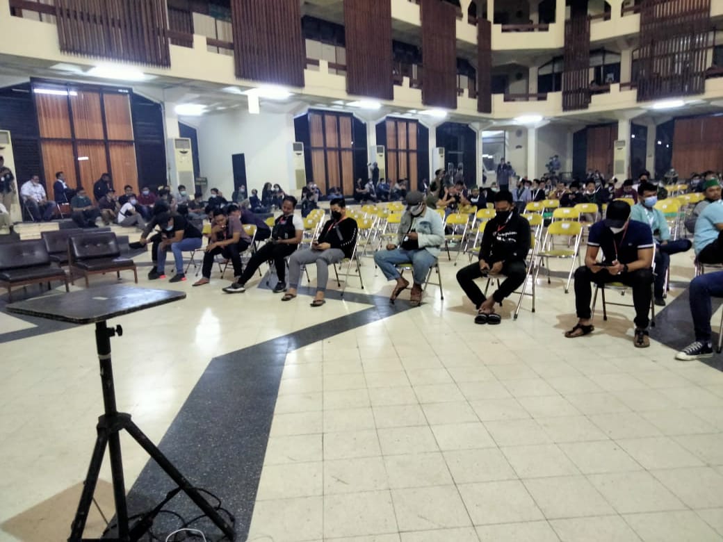 Terlihat di dalam foto tersebut orang yang berbadan tegap dan kekar duduk di barisan paling depan tanpa menggunakan atribut HMI yang sudah beredar di media sosial.