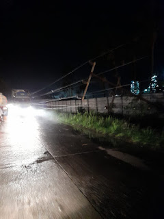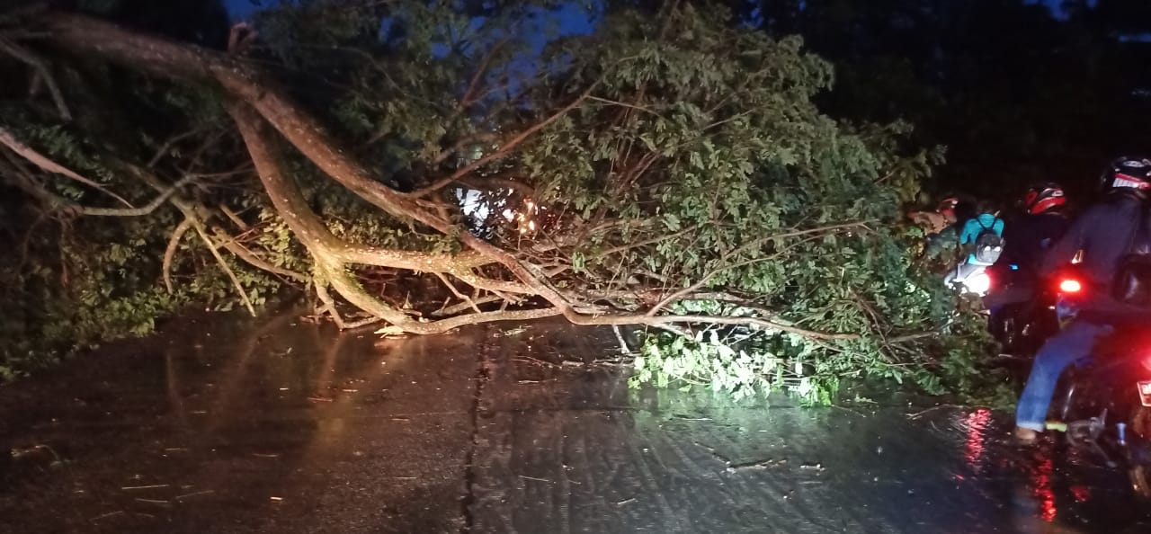 Terlihat juga pohon dikawasan tersebut tumbang ke arah jalan utama, sehingga para pengguna jalan hanya dapat menggunakan setengah jalan saja dan harus bergantian melintasi jalan tersebut.