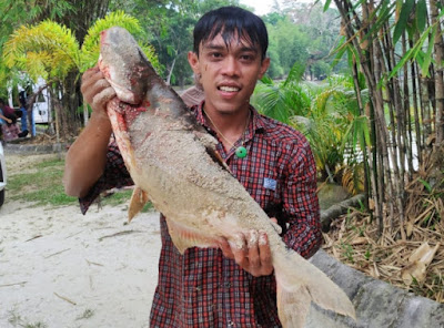 Disampaikan Riyono, untuk ikan yang ditabur itu terdiri dari ikan patin, emas, baung dan juga ikan ikan lele. Sudah ditebar sejak kemarin sore dan juga tadi pagi.