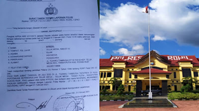 Penasehat hukum (Advokat), Saro Totonafo Hulu SH, kepada Wartawan mengatakan, “Kasus dugaan perbuatan pemalsuan surat autentik yang dijadikan bukti syarat untuk pendaftaran calon Penghulu Teluk Mega, Kecamatan Tanah Putih, Kabupaten Rohil oleh mantan narapidana perkara narkoba bernisial MR, telah dilaporkan kliennya (Afrizal, SH) ke Polres Rohil sejak tanggal 01 Februari 2021, dengan bukti surat tanda terima laporan, Nomor: STPL/12/II/2021/RIAU/ RES.ROHIL/SPKT,” terangnya.
