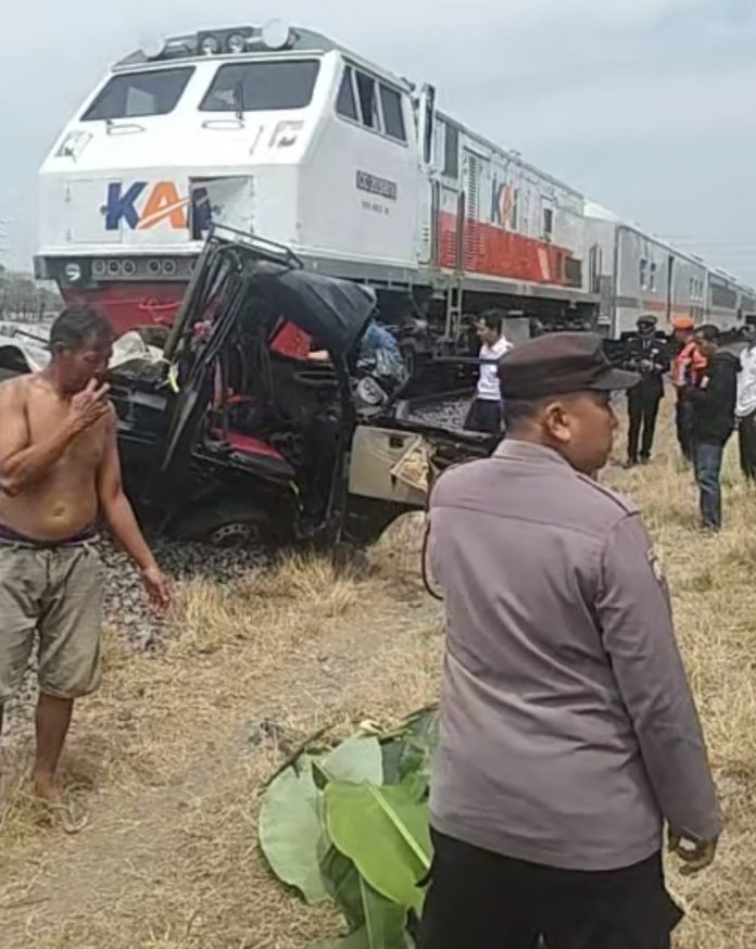 Namun, saat melintas di lokasi kejadian, kereta menabrak mobil pikap hingga terseret ratusan meter.