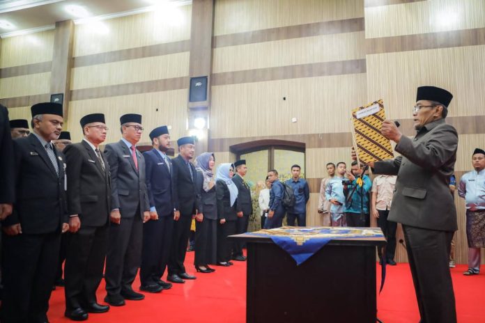 DUMAI – Wakil Walikota Dumai Sugiyarto secara resmi melantik 21 orang pejabat Eselon II di Lingkungan Pemerintah Kota Dumai. Pelantikan ini dilaksanakan pada Ruang Kamboja Lt.4 Kantor Walikota Dumai dan turut dihadiri Sekdako Dumai H. Indra Gunawan bersama Inspektur Daerah Riki Dwi Woro, Jum’at (26/9/2025).