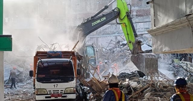 Sementara terkait puing-puing bangunan telah dibersihkan hingga 75% sampai dengan hari ini. Hal itu membuka akses bagi petugas untuk memaksimalkan pencarian.**