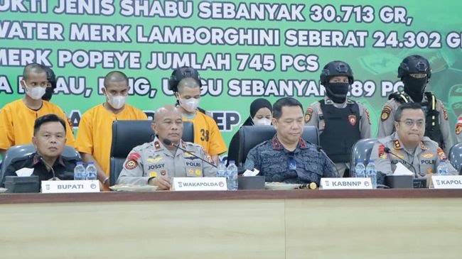 Seperti diketahui, Polres Kepulauan Meranti menggagalkan jaringan narkoba internasional dengan menyita 30 kilogram sabu, 24,3 kilogram Happy Water merek Lamborghini, serta 1.034 catridge liquid mengandung narkotika dengan merek Popeye, Pink, Hijau, dan Ungu. Dalam operasi ini, Satuan Reserse Narkoba Polres Kepulauan Meranti menangkap empat orang tersangka.