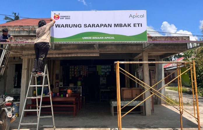 DUMAI – Komitmen Apical dalam mendukung pelaku UMKM terus membuahkan hasil. Salah satu Mbak Eti pemilik kedai di Kelurahan Lubuk Gaung, Kecamatan Sungai Sembilan, Dumai yang kini masih 75 persen tahap pengerjaan. Usaha kuliner yang bernama Warung Sarapan Pagi Embak Eti.