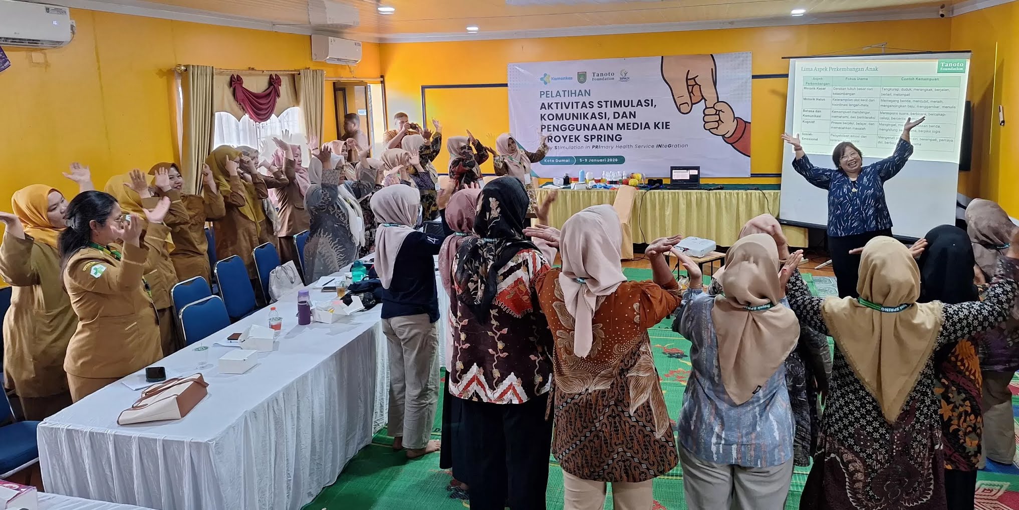 DUMAI – Tanoto Foundation melalui Proyek SPRING (Early Stimulation in Primary Health Service Integration) menyelenggarakan Pelatihan Aktivitas Stimulasi, Komunikasi, serta Penggunaan Media KIE (Komunikasi, Informasi, dan Edukasi) pada 5–9 Januari 2026 di Kota Dumai.